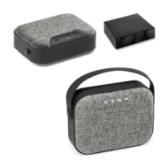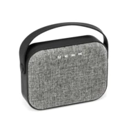 Tragbarer Lautsprecher mit schlichtem Design, gummierter Oberfläche und Stoff-Frontgitter. Ausgestattet mit einem Tragegriff zum einfachen Aufhängen oder Mitnehmen sowie rutschfesten Silikonfüßen. Die zwei integrierten Lautsprecher sorgen für einen klareren und intensiveren Klang.Material: ABS, StoffKabellose Übertragung: BT v4'2Kapazität: 1'200 mAhUngefähre Akkulaufzeit: 4 Std.Ungefähre Ladezeit: 5 Std.Eingänge: microUSB-C (5 W), microSD, 3.5 mmLautsprecher: Frequenzbereich: 100 Hz – 20 kHzSignal-Rausch-Verhältnis: > 80 dB– Empfindlichkeit: 80 ±3 dBImpedanz: 4 ΩLautsprecher-Durchmesser: Ø 40 mmAusgangsleistung: 6 W (2 x 3 W)Mikrofon: Empfindlichkeit: -38 ±3 dBV/PaFunktionen: Freisprechfunktion, FM-RadioLieferumfang: USB-A-/microUSB-Kabel, 3.5 mm-AudiokabelVerpackung: Schwarze GeschenkschachtelAbmessungen: 160 x 120 x 50 mm | Schachtel: 180 x 180 x 66 mm