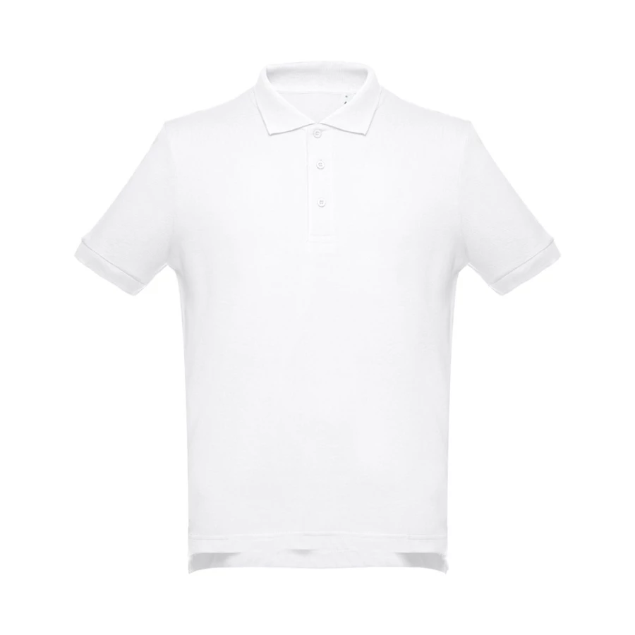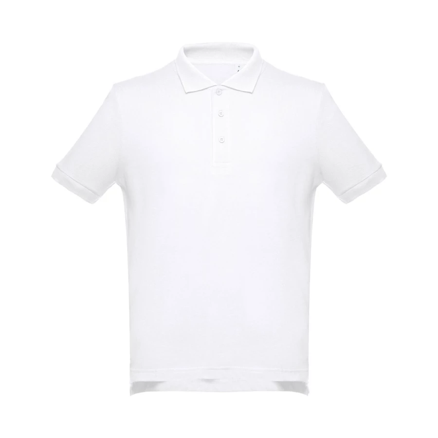 Herren Poloshirt aus Piqué Stoff 100% Baumwolle (195g/m²). Gerippter Kragen und Ärmel. Verstärkungsband am Kragen und verstärkte Knopfleiste mit 3 farblich abgestimmten Knöpfen. Unten mit seitlichen Öffnungen. Ersatzknopf an der Innennaht. Größen: S, M, L, XL, XXL