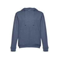 Herren Sweatjacke aus 50% Baumwolle und 50% Polyester (320g/m²) mit Reißverschluss und gefütterter Kapuze mit Kordelzug. Kardiert mit 2 Kängurutaschen, einem verdeckten Kunststoffreißverschluss und einem gerripten Bund. Größen: S, M, L, XL, XXL
