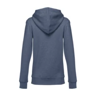 Damen Sweatjacke aus 50% Baumwolle und 50% Polyester (320g/m²) mit Reißverschluss und gefütterter Kapuze mit Kordelzug. Kardiert mit 2 Kängurutaschen, einem verdeckten Kunststoffreißverschluss und einem gerripten Bund. Größen: S, M, L, XL, XXL