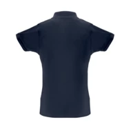 Damen Poloshirt aus Piqué Stoff 35% kardierter Baumwolle und 65% Polyester (200g/m²), tailliert mit geripptem Kragen und Ärmel. (Farbe: 183: 85% Baumwolle /15% Viskose). Der Kragen, die Knopfleiste und die Ärmel haben einen zweifarbigen Kontrast. Mit verstärkter Knopfleiste und 3 farblich abgestimmten Knöpfen, seitlichen Öffnungen und einem Ersatzknopf an der Innennaht. Größen: S, M, L, XL, XXL