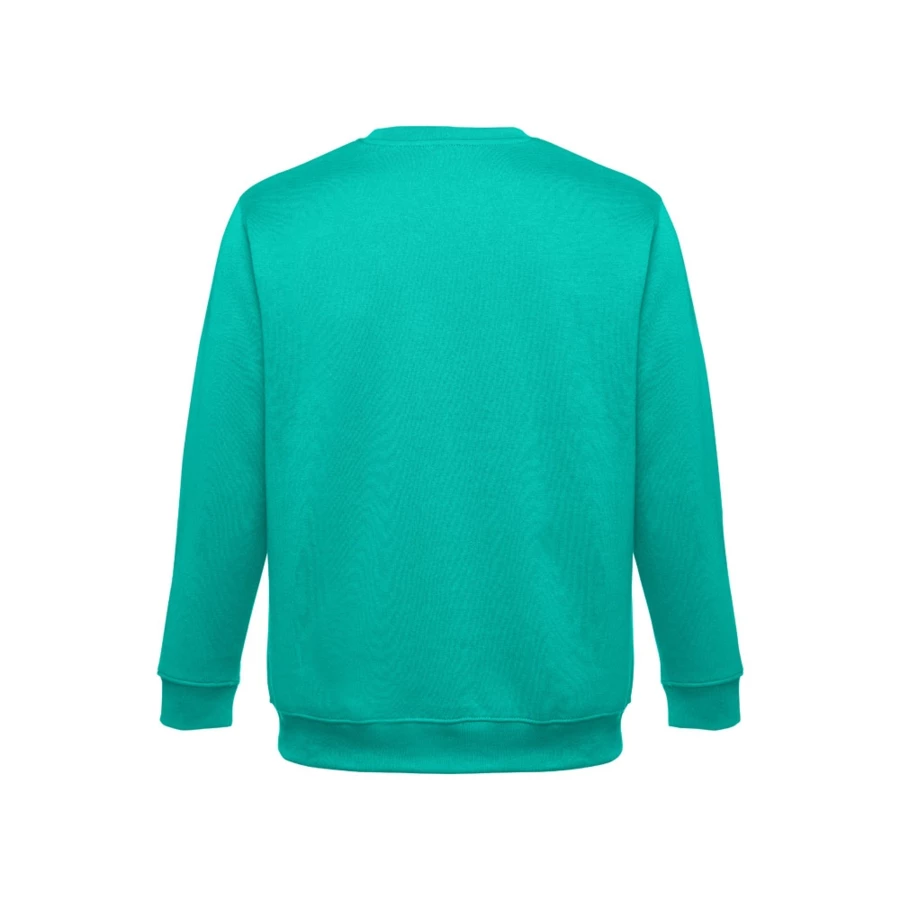 Sweatshirt aus 50% Baumwolle und 50% Polyester (300g/m²), unisex. Innen kardiert, 1x1 Ripp, Bund am Ärmel und Saum, Doppelnaht und Verstärkungsband am Kragen. Größen: S, M, L, XL, XXL