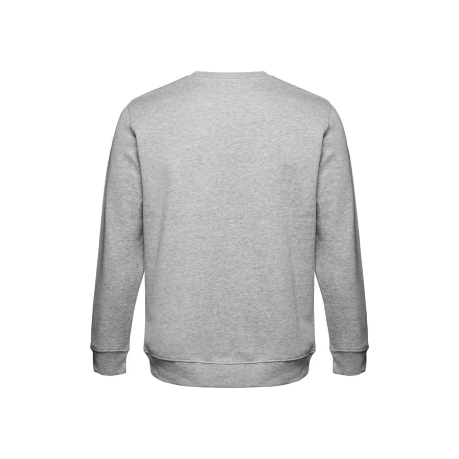 Sweatshirt aus 50% Baumwolle und 50% Polyester (300g/m²), unisex. Innen kardiert, 1x1 Ripp, Bund am Ärmel und Saum, Doppelnaht und Verstärkungsband am Kragen. Größen: S, M, L, XL, XXL