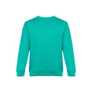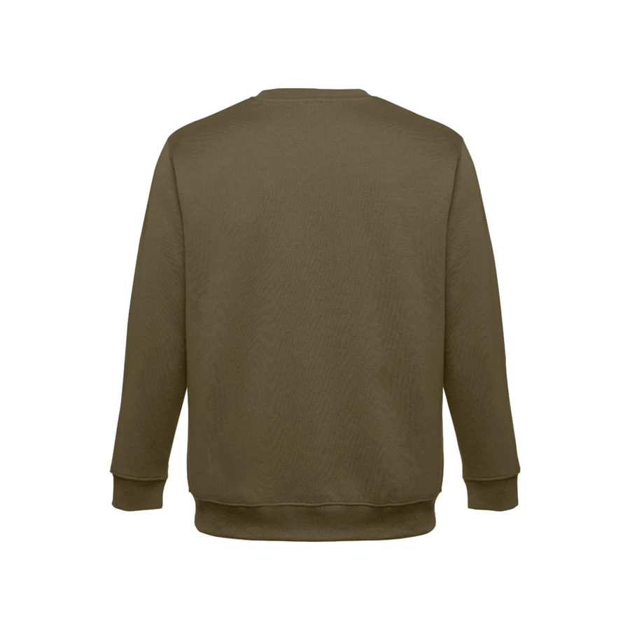 Sweatshirt aus 50% Baumwolle und 50% Polyester (300g/m²), unisex. Innen kardiert, 1x1 Ripp, Bund am Ärmel und Saum, Doppelnaht und Verstärkungsband am Kragen. Größen: S, M, L, XL, XXL