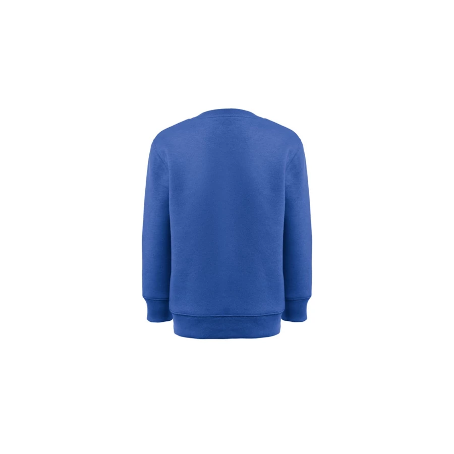 Sweatshirt für Kinder (300 g/m²) aus Baumwolle (50%) und recyceltem Polyester (50%). Kardierte Innenseite und 1x1-Rippe an Kragen, Bündchen und Saum. Größen: 4, 6, 8, 10, 12