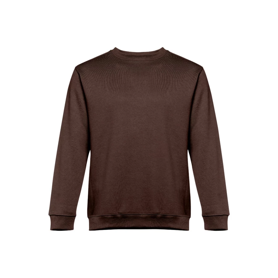 Sweatshirt aus 50% Baumwolle und 50% Polyester (300g/m²), unisex. Innen kardiert, 1x1 Ripp, Bund am Ärmel und Saum, Doppelnaht und Verstärkungsband am Kragen. Größen: S, M, L, XL, XXL