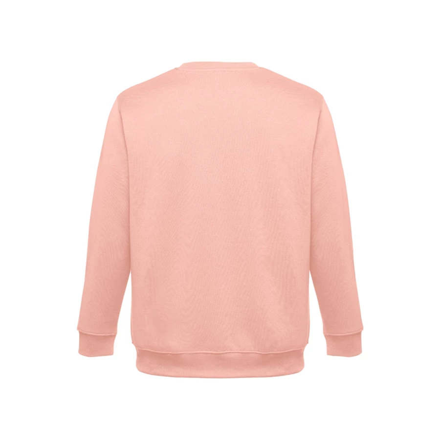 Sweatshirt aus 50% Baumwolle und 50% Polyester (300g/m²), unisex. Innen kardiert, 1x1 Ripp, Bund am Ärmel und Saum, Doppelnaht und Verstärkungsband am Kragen. Größen: S, M, L, XL, XXL