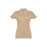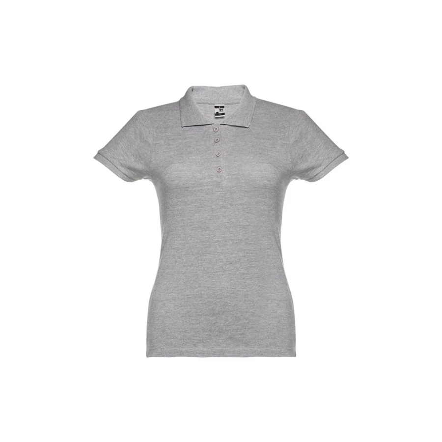 Damen Poloshirt aus Piqué Stoff 100% kardierter Baumwolle (195 g/m²), mit geripptem Kragen und Ärmel, Verstärkungsband am Kragen, verstärkte Knopfleiste mit 4 farblich abgestimmten Knöpfen und einem Ersatzknopf an der Innennaht.Bei der Farbe 183 bestehend aus 85% Baumwolle und 15% Viskose. Größen: S, M, L, XL, XXL