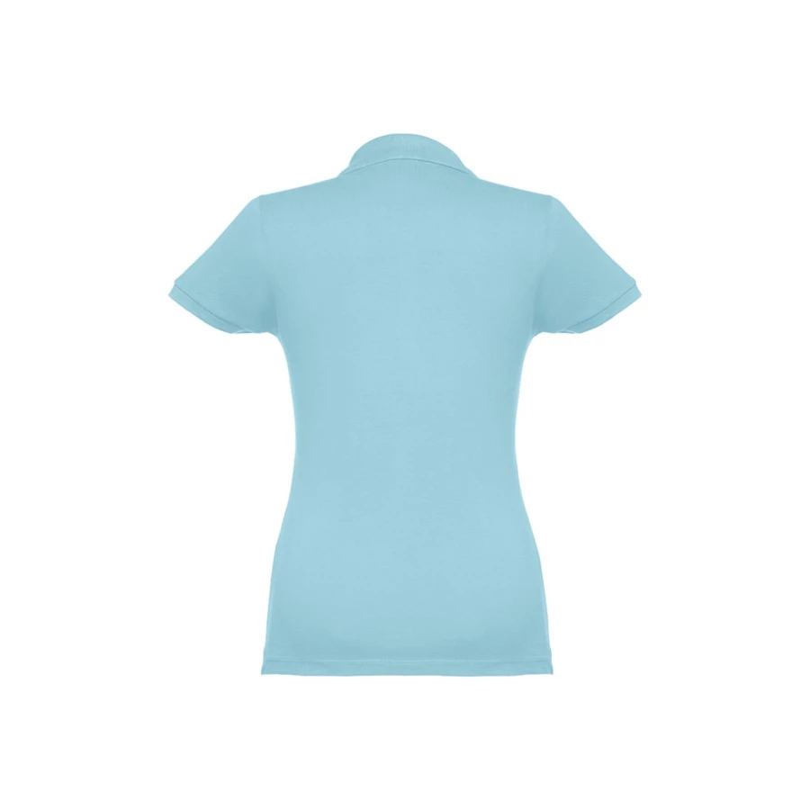 Damen Poloshirt aus Piqué Stoff 100% kardierter Baumwolle (195 g/m²), mit geripptem Kragen und Ärmel, Verstärkungsband am Kragen, verstärkte Knopfleiste mit 4 farblich abgestimmten Knöpfen und einem Ersatzknopf an der Innennaht.Bei der Farbe 183 bestehend aus 85% Baumwolle und 15% Viskose. Größen: S, M, L, XL, XXL