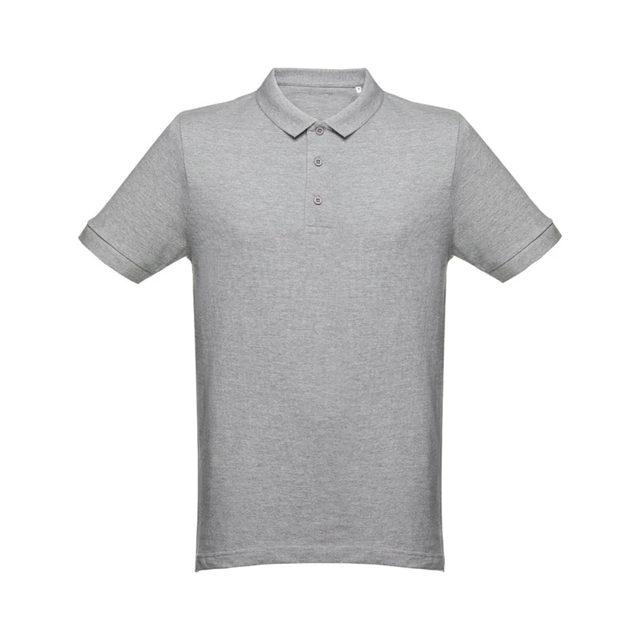 Herren Poloshirt aus Piqué Stoff 100% kardierter Baumwolle (240g/m²) mit geripptem Kragen und Ärmel, einem Verstärkungsband aus Piqué Stoff am Kragen, verstärkte Knopfleiste mit 3 farblich abgestimmten Knöpfen und einem Ersatzknopf an der Innennaht. Unten mit seitlichen Öffnungen. Bei der Farbe 183 bestehend aus 85% Baumwolle und 15% Viskose. Etikett ist abreissbar. Größen: S, M, L, XL, XXL