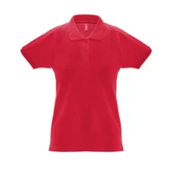 Damen Poloshirt aus Piqué Stoff 100% kardierter Baumwolle (240 g/m²), mit geripptem Kragen und Ärmel, Verstärkungsband am Kragen, seitliche Öffnungen, verstärkte Knopfleiste mit 2 farblich abgestimmten Knöpfen und einem Ersatzknopf an der Innennaht. Etikett entfernbar. Größen: S, M, L, XL, XXL
