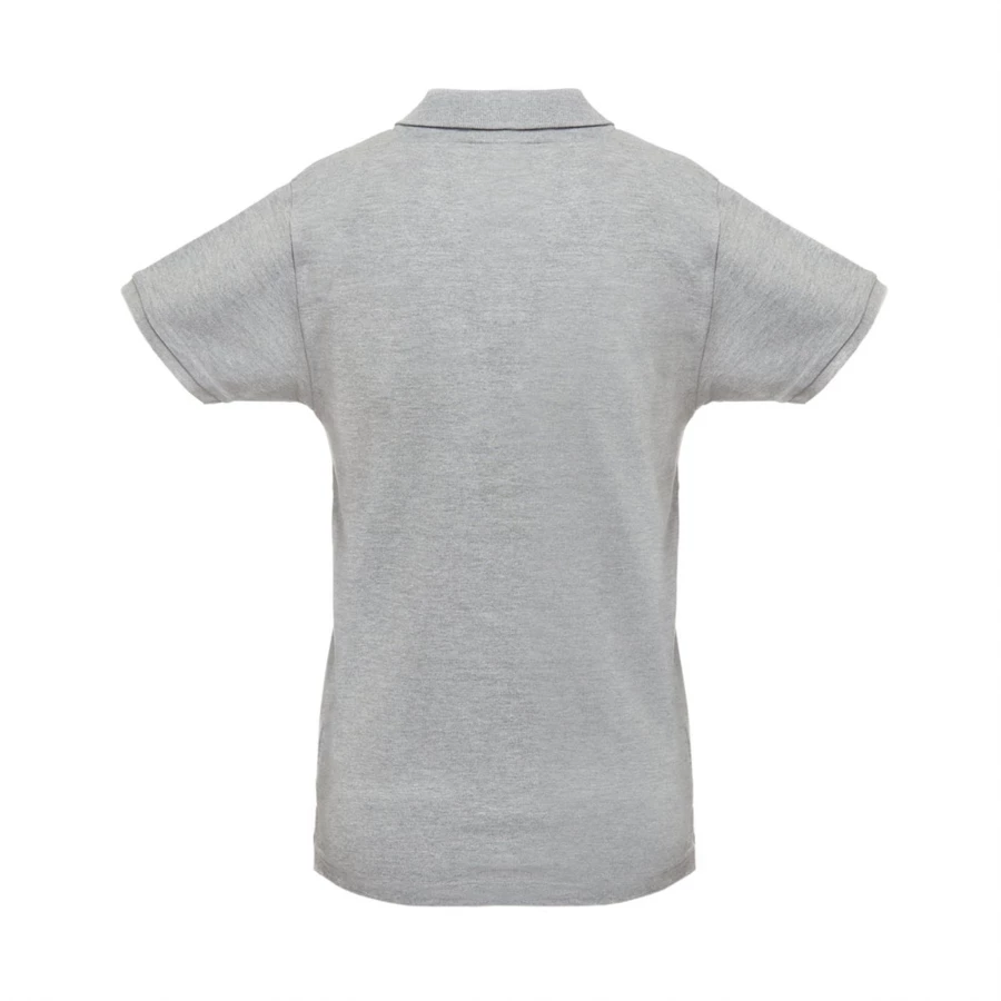 Damen Poloshirt aus Piqué Stoff 100% kardierter Baumwolle (240 g/m²), mit geripptem Kragen und Ärmel, Verstärkungsband am Kragen, seitliche Öffnungen, verstärkte Knopfleiste mit 2 farblich abgestimmten Knöpfen und einem Ersatzknopf an der Innennaht. Etikett entfernbar. Größen: S, M, L, XL, XXL