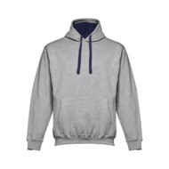 Sweatshirt aus 50% Baumwolle und 50% Polyester (320g/m²), unisex. Von innen kardiert mit einer Kängurutasche und Ripp 1x1 an Ärmelbündchen und Bund. Kapuze mit farblichem Kordelzug. Größen: S, M, L, XL, XXL