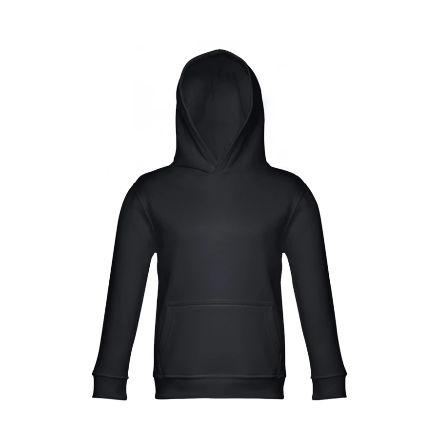 Kinder Sweatshirt aus 50% Baumwolle und 50% Polyester (320g/m²), unisex mit Kapuze in Jersey. Innen kardiert, Ripp 1x1 an Ärmelbündchen und Bund und einer Kängurutasche. Kapuze in Übereinstimmung mit den Sicherheitsstandards der Europäischen Union. Größen: 2, 4, 6, 8, 10, 12