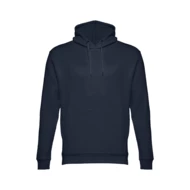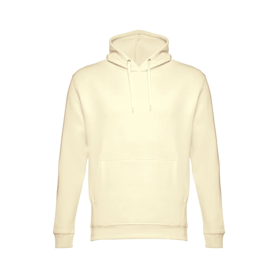 Sweatshirt aus 50% Baumwolle und 50% Polyester (320g/m²), unisex mit einer Kapuze mit Kordelzug. Innen kardiert, 1x1 Ripp, Bund an Ärmel und einer Kängurutasche. Größen: XS, S, M, L, XL, XXL