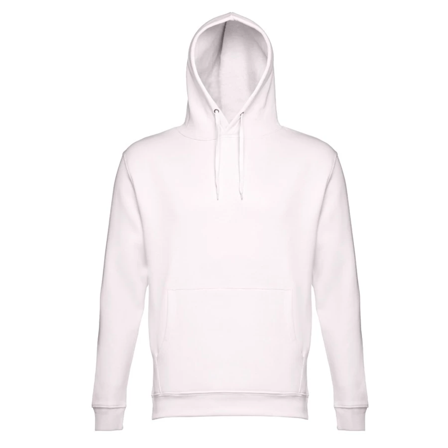 Sweatshirt aus 50% Baumwolle und 50% Polyester (320g/m²), unisex mit einer Kapuze mit Kordelzug. Innen kardiert, 1x1 Ripp, Bund an Ärmel und einer Kängurutasche. Größen: XS, S, M, L, XL, XXL