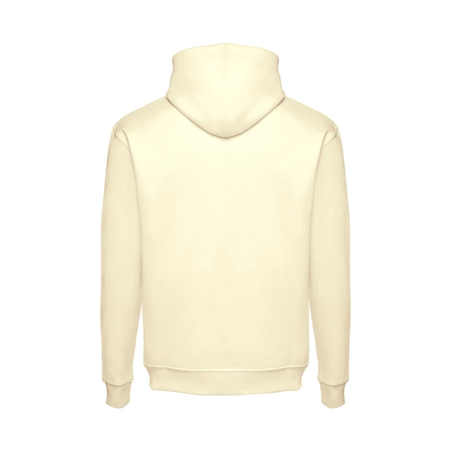Sweatshirt aus 50% Baumwolle und 50% Polyester (320g/m²), unisex mit einer Kapuze mit Kordelzug. Innen kardiert, 1x1 Ripp, Bund an Ärmel und einer Kängurutasche. Größen: XS, S, M, L, XL, XXL