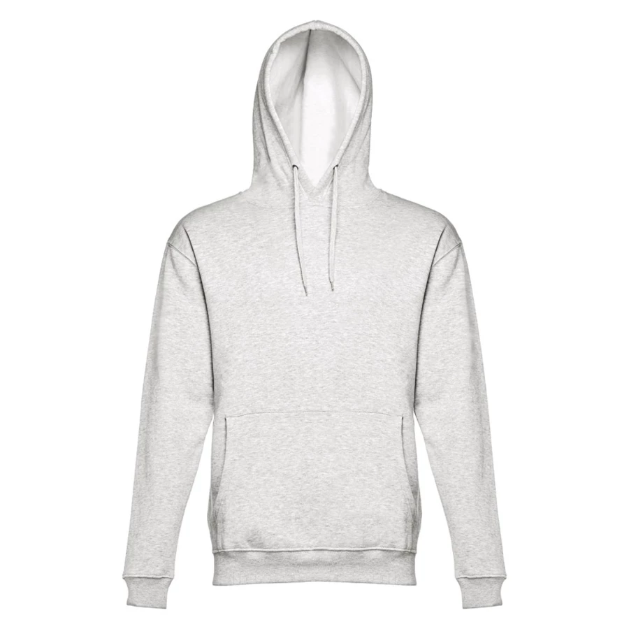 Sweatshirt aus 50% Baumwolle und 50% Polyester (320g/m²), unisex mit einer Kapuze mit Kordelzug. Innen kardiert, 1x1 Ripp, Bund an Ärmel und einer Kängurutasche. Größen: XS, S, M, L, XL, XXL