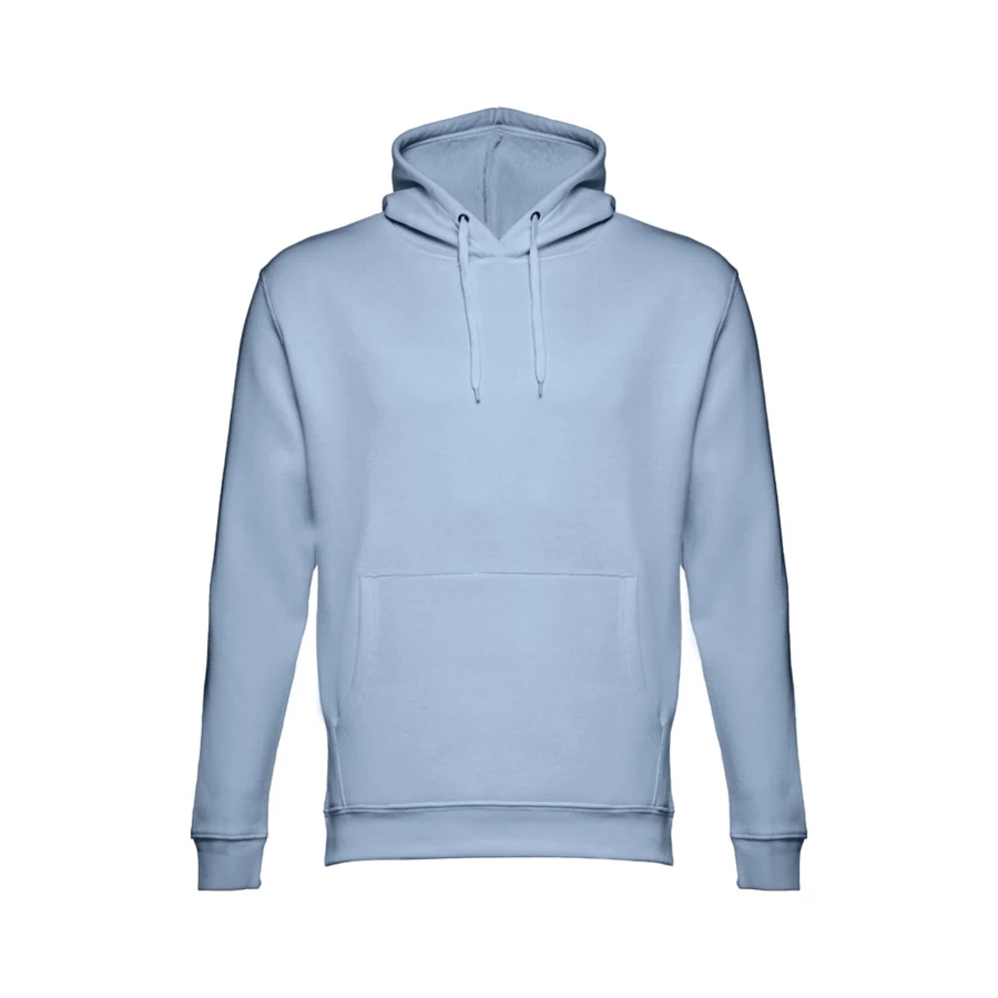 Sweatshirt aus 50% Baumwolle und 50% Polyester (320g/m²), unisex mit einer Kapuze mit Kordelzug. Innen kardiert, 1x1 Ripp, Bund an Ärmel und einer Kängurutasche. Größen: XS, S, M, L, XL, XXL