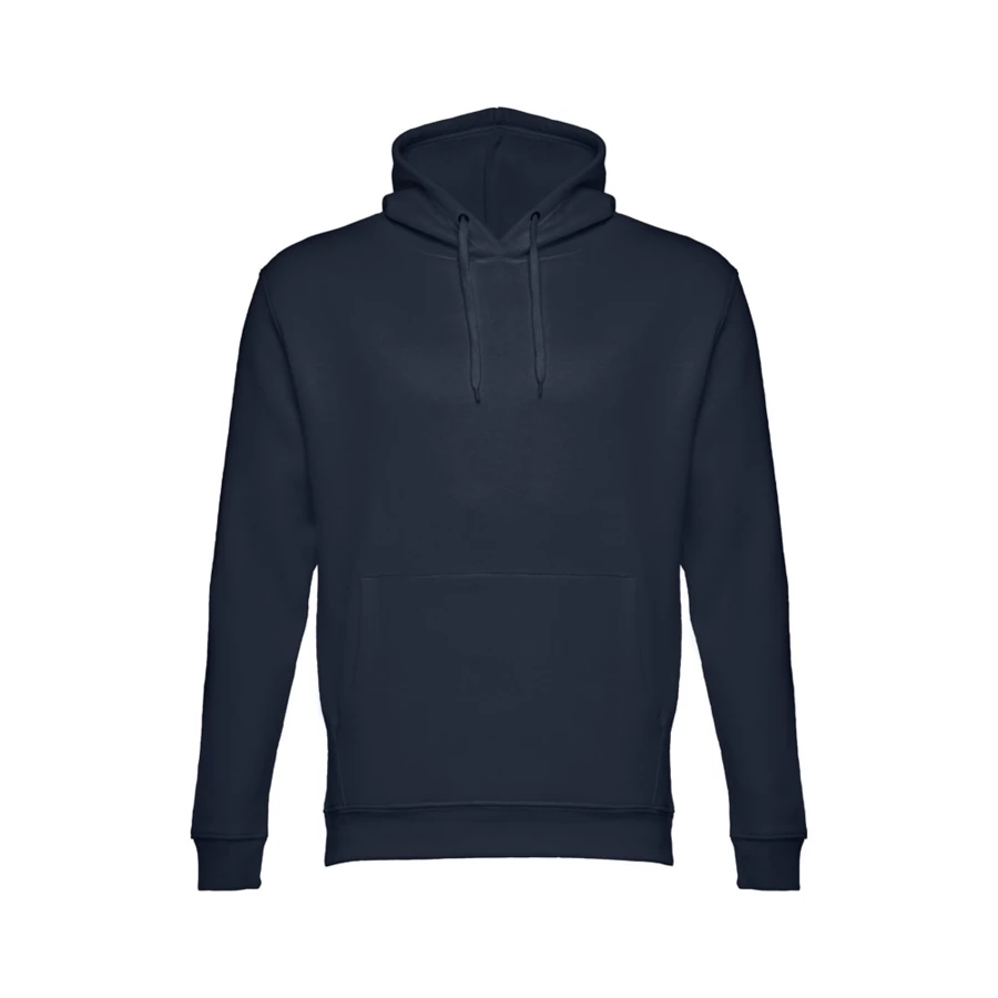 Sweatshirt aus 50% Baumwolle und 50% Polyester (320g/m²), unisex mit einer Kapuze mit Kordelzug. Innen kardiert, 1x1 Ripp, Bund an Ärmel und einer Kängurutasche. Größen: XS, S, M, L, XL, XXL