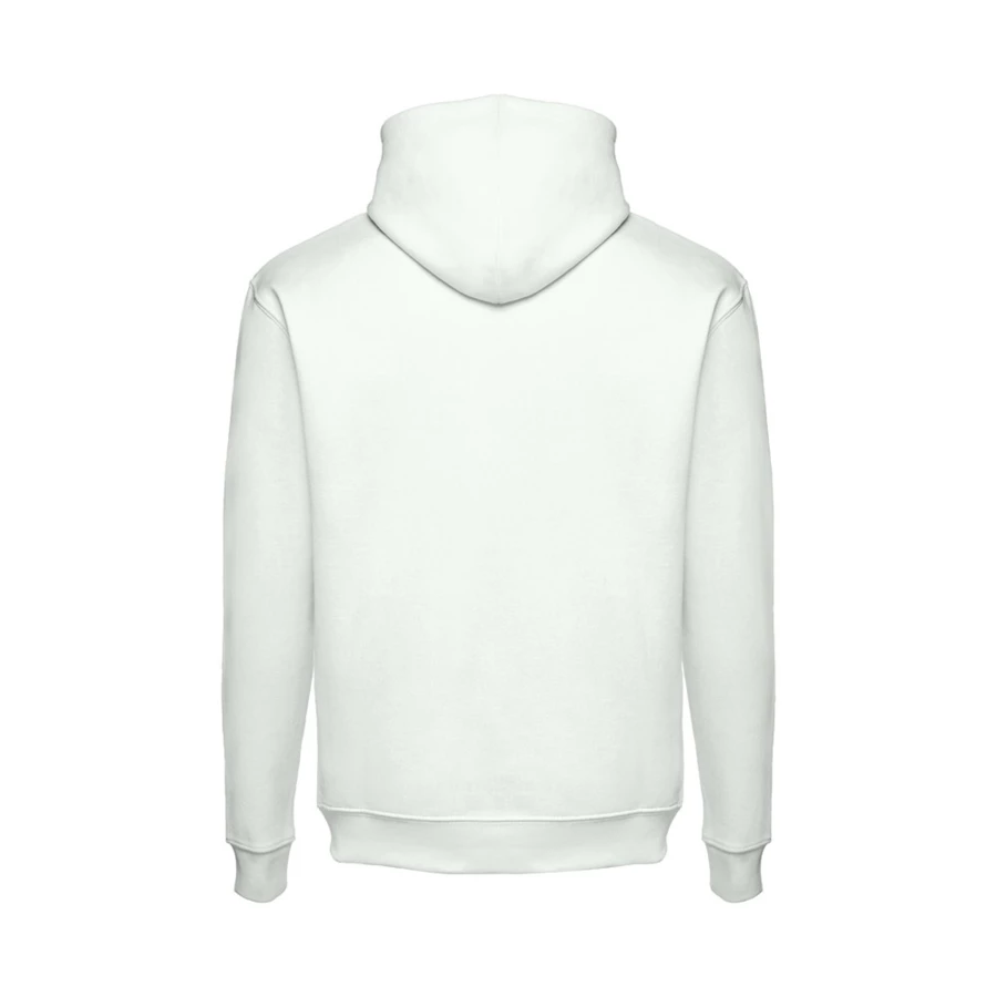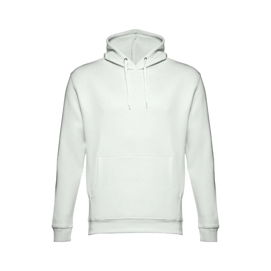 Sweatshirt aus 50% Baumwolle und 50% Polyester (320g/m²), unisex mit einer Kapuze mit Kordelzug. Innen kardiert, 1x1 Ripp, Bund an Ärmel und einer Kängurutasche. Größen: XS, S, M, L, XL, XXL