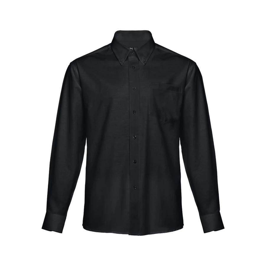 Herren langarm Oxford Hemd aus 70% Baumwolle und 30% Polyester (130g/m²) mit einer Brusttasche auf der linken Seite, einem Kragen mit zwei Knöpfen, verstellbare Manschetten mit 2 Knöpfen und einer Knopfleiste mit 7 farblich abgestimmten Knöpfen. Größen: S, M, L, XL, XXL