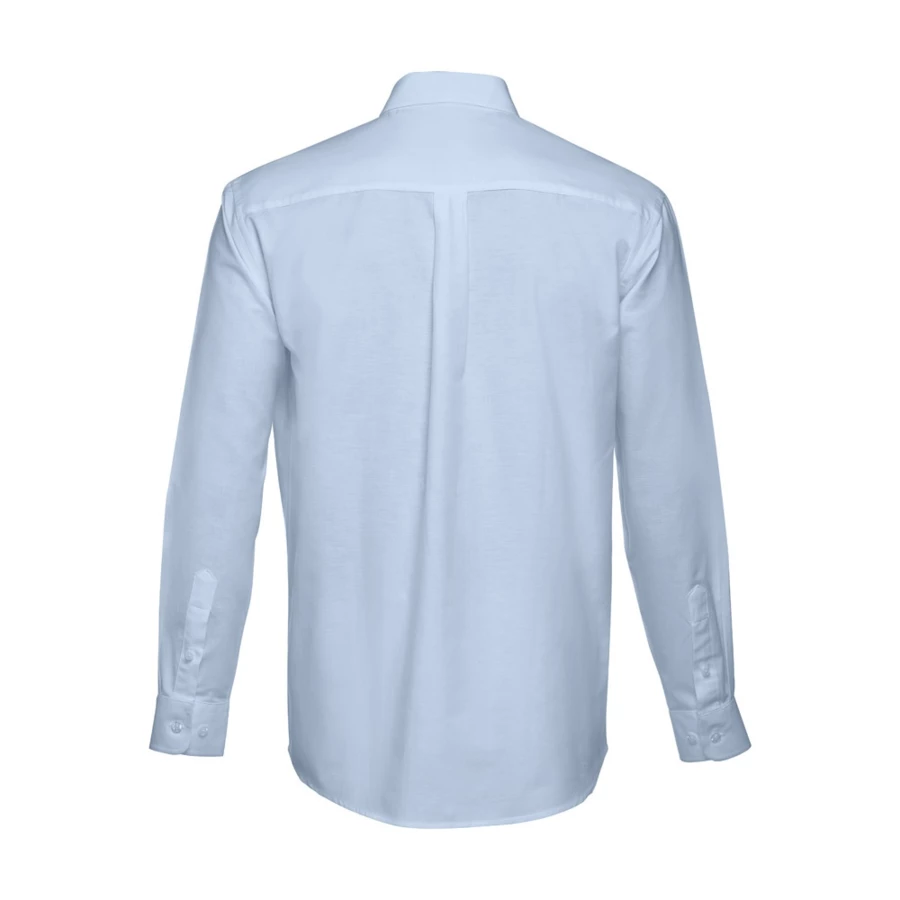 Herren langarm Oxford Hemd aus 70% Baumwolle und 30% Polyester (130g/m²) mit einer Brusttasche auf der linken Seite, einem Kragen mit zwei Knöpfen, verstellbare Manschetten mit 2 Knöpfen und einer Knopfleiste mit 7 farblich abgestimmten Knöpfen. Größen: S, M, L, XL, XXL