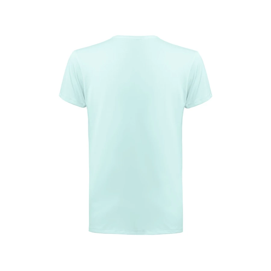 T-Shirt aus Jersey (190 g/m²), bestehend aus 90 % Polyester und 10 % Elastan. Mit 1x1-Rippstrickkragen. Doppelnähte an Ärmeln und Saum. Lieferung in einer Papprolle. Größen: XS, S, M, L, XL