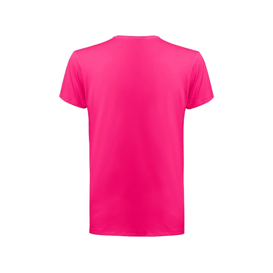 T-Shirt aus Jersey (190 g/m²), bestehend aus 90 % Polyester und 10 % Elastan. Mit 1x1-Rippstrickkragen. Doppelnähte an Ärmeln und Saum. Lieferung in einer Papprolle. Größen: XS, S, M, L, XL