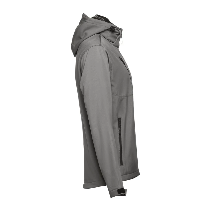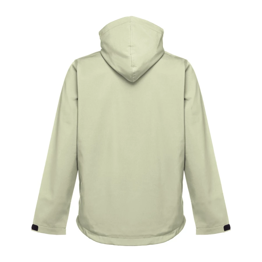 Herren Softshell Jacke aus 96% Polyester und 4% Elasthan (280g/m²) mit abnehmbarer, wasserabweisender und zweischichtiger Kapuze. Diese Jacke ist mit Fleecefutter ausgestattet, hat 2 Vordertaschen mit Reißverschluss und eine diagonale Brusttasche. Auch hat diese verstellbare Ärmelbündchen mit Klettverschluss, eine abnehmbare Kapuze mit Kordelzug, einen verstellbaren Stopper und Klettverschluss. Abgerundete Rückenseite. Größen: S, M, L, XL, XXL