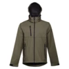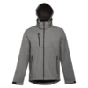 Herren Softshell Jacke aus 96% Polyester und 4% Elasthan (280g/m²) mit abnehmbarer, wasserabweisender und zweischichtiger Kapuze. Diese Jacke ist mit Fleecefutter ausgestattet, hat 2 Vordertaschen mit Reißverschluss und eine diagonale Brusttasche. Auch hat diese verstellbare Ärmelbündchen mit Klettverschluss, eine abnehmbare Kapuze mit Kordelzug, einen verstellbaren Stopper und Klettverschluss. Abgerundete Rückenseite. Größen: S, M, L, XL, XXL