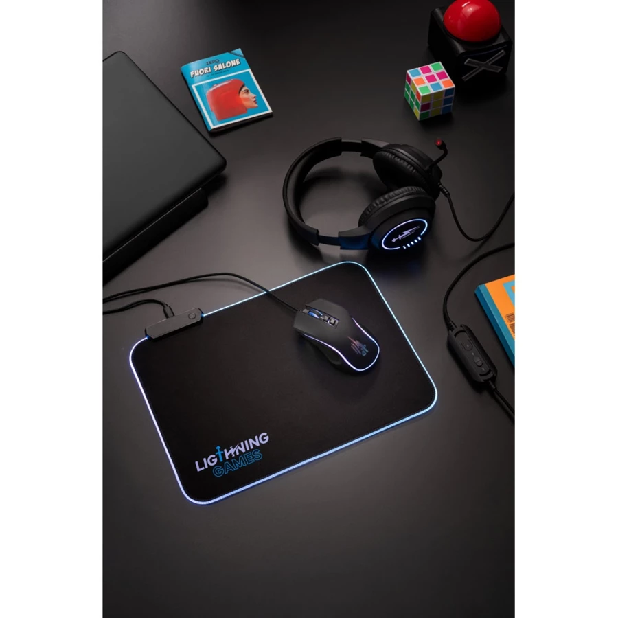 Mauspad mit rutschfester Gummibeschichtung. Dank der Größe und Materialauswahl ist es ideal für Computerspiele oder intensiven Bürogebrauch. Mit RGB-LED-Beleuchtung für ein verbessertes Spielerlebnis.Material: Polyester und GummiAnschluss: USB-CFunktionen: RGB-LED mit 15 ModiInklusive: USB-C-Kabel aus NylonLieferung: schwarze GeschenkboxAbmessungen: 250 x 350 x 4 mm