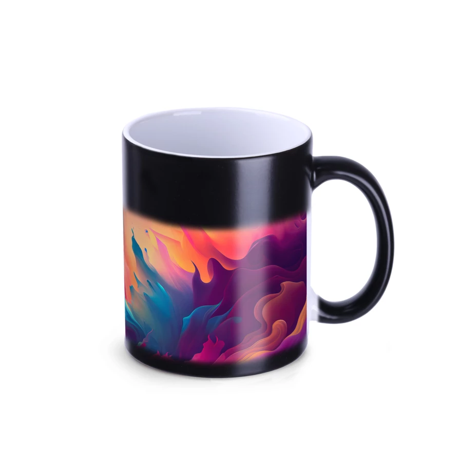 Ein Becher mit klassischem Design, auf dem nach dem Füllen mit heißem Wasser auf "magische Weise" ein Motiv zum Vorschein kommt. Er kann in fotografischer Qualität gedruckt werden. Für diejenigen, die originelle Lösungen schätzen.