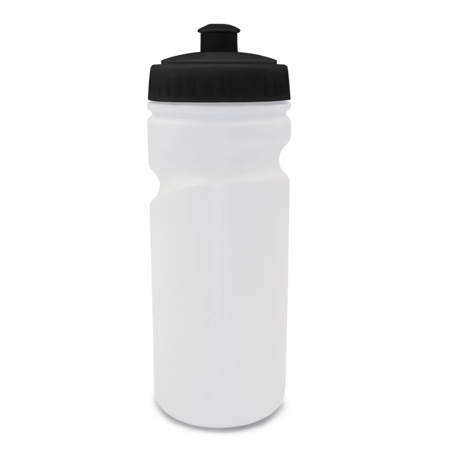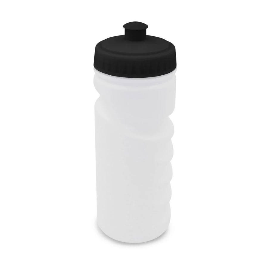 Flasche 500 ml mit farbigem Verschluss, mit Ausgießer für einfaches Trinken und einer konturierten Form, damit die Flasche besser in der Hand liegt, aus PE und PP