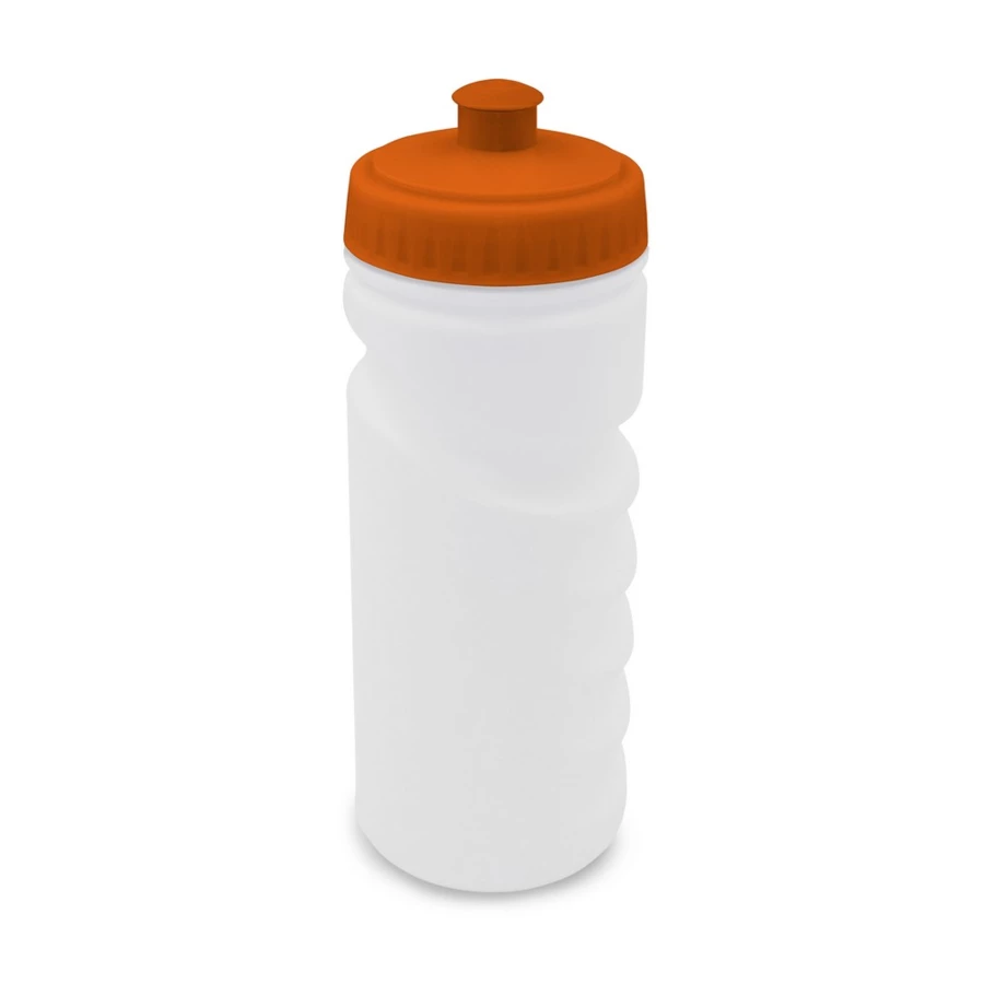 Flasche 500 ml mit farbigem Verschluss, mit Ausgießer für einfaches Trinken und einer konturierten Form, damit die Flasche besser in der Hand liegt, aus PE und PP