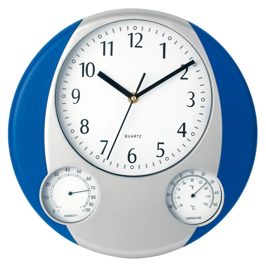 Wanduhr, Wetterstation mit Thermometer und Feuchtigkeitsmesser