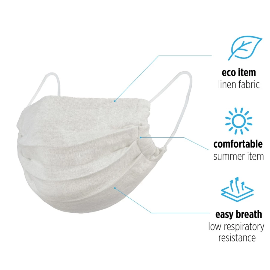 Nicht medizinische Maske, wiederverwendbar, zweischichtig, aus Leinen, Temperatur der ersten Wäsche: 30 Grad Celsius, Temperatur der nachfolgenden Wäschen: 40 Grad Celsius, die Maske kann mit Wasser bei 100 Grad Celsius sterilisiert und bei Temperaturen bis zu 200 Grad Celsius gebügelt werden, Es verfügt über das OEKO-TEX Standard 100-Zertifikat, flexible Verschlüsse für bequemes Tragen (made in Europe / hergestellt in Europa)