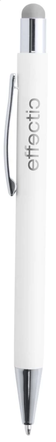 Aluminium-Kugelschreiber mit Touchpen und Spezialbeschichtung für eine Farbgravur, blauschreibend.