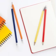 Holzbleistift (HB) mit Radiergummi, gespitzt.