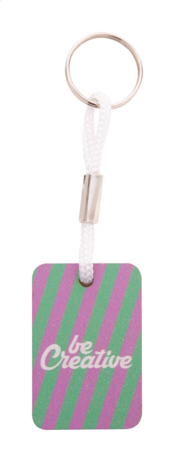Rechteckiger Schlüsselanhänger aus Birkensperrholz mit farbigem Band aus Polyester und Vollfarbdruck. Der Preis ist inkl. UV Druck auf einer Seite. Mindestmenge: 200 Stk.