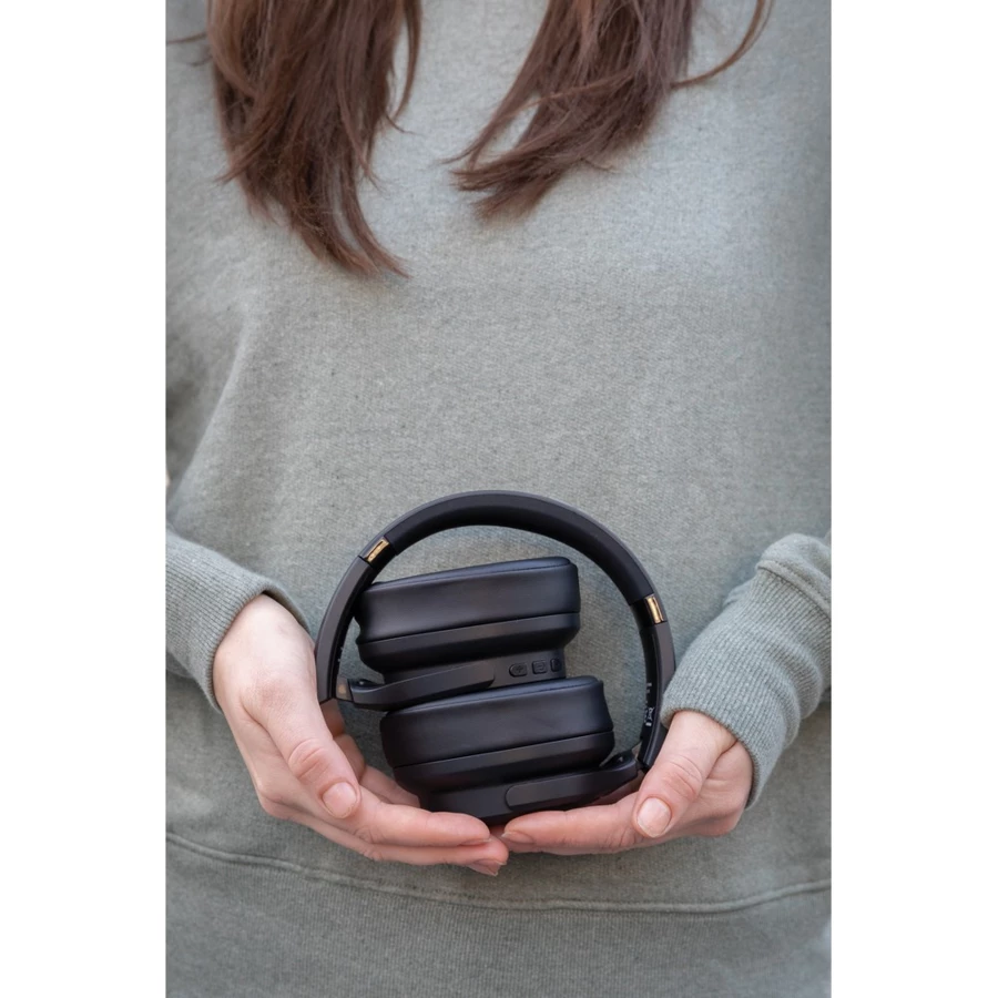 You feel it immediately you put them on, this is the perfect headphone to get carried away by your favourite music. The soft cushions fit perfectly on your ear, you can easily wear them all day. The twistable design makes them fit even better and the deep clear audio starts flowing to your ears. The battery will not let you down: 60 hours of non-stop music , podcast or video. If someone calls you, simply answer it with the integrated mic. When you need a short break from your headphone just fold it to a portable size so it fits easily in your backpack. Including rPet string pouch made with AWARE™ tracer. The headphone is made with RCS (Recycled Claim Standard) certified recycled ABS. Total recycled content: 65 % based on total item weight. RCS certification ensures a completely certified supply chain of the