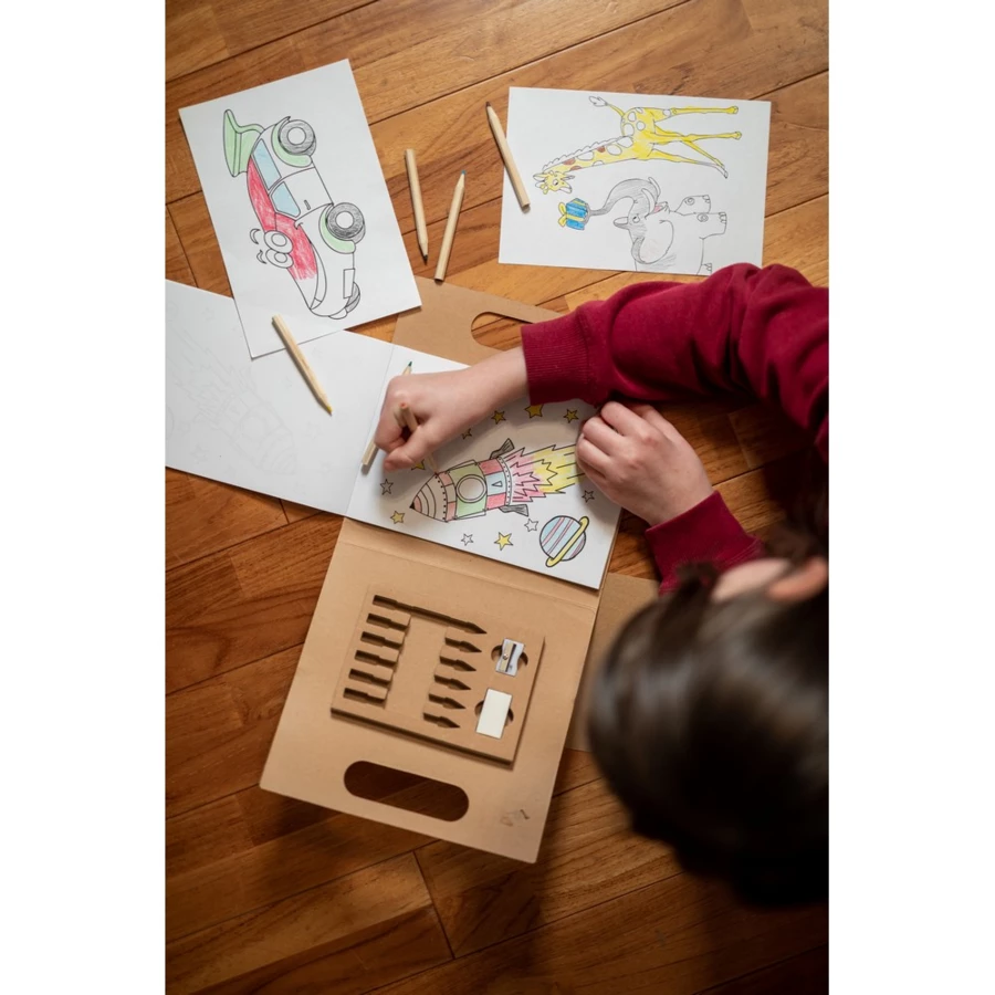 Ein Set zum Zeichnen, 10 Muster Malbücher (je 3 Stk.), 6 Buntstifte, ein Anspitzer, ein Radiergummi
