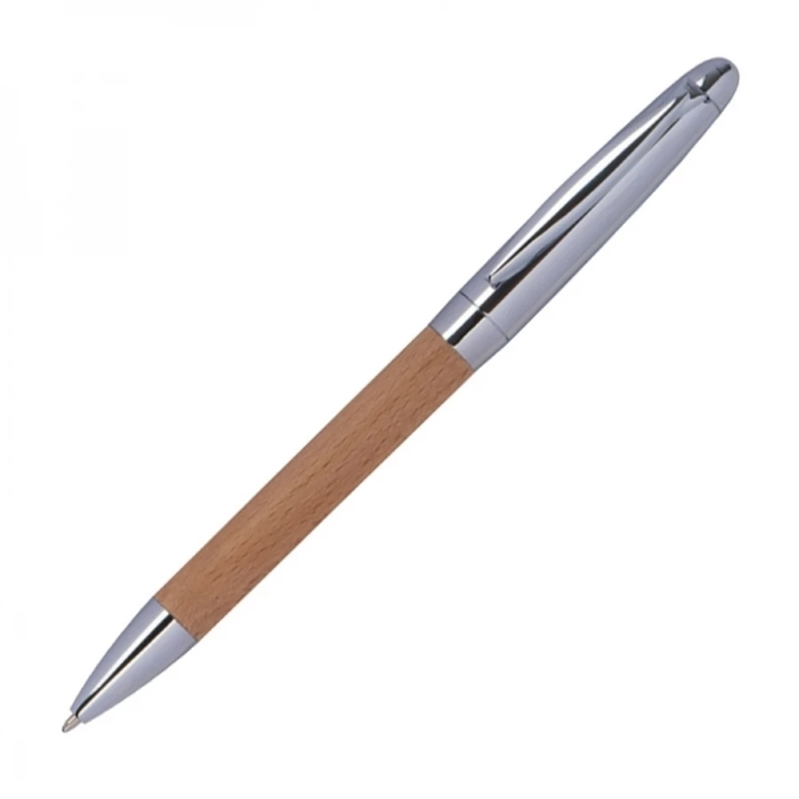 Zestaw składający się z długopisu i breloka. Oba gadżety wykonane są z drewna i posiadają metalowe elementy.