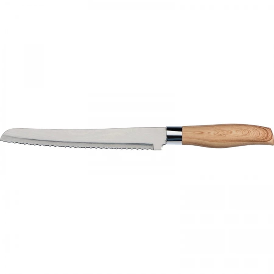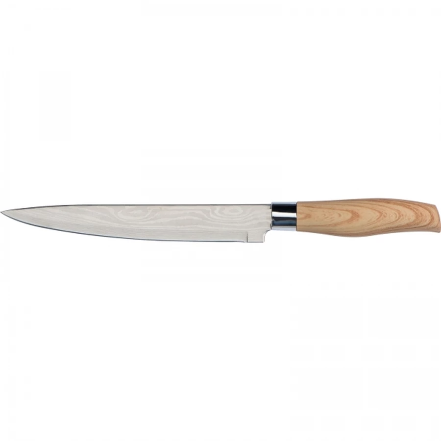 Zestaw 5 noży kuchennych w różnych rozmiarach. Noże posiadają ostrze ze stali nierdzewnej i antypoślizgową rękojeść z tworzywa imitującego drewno.