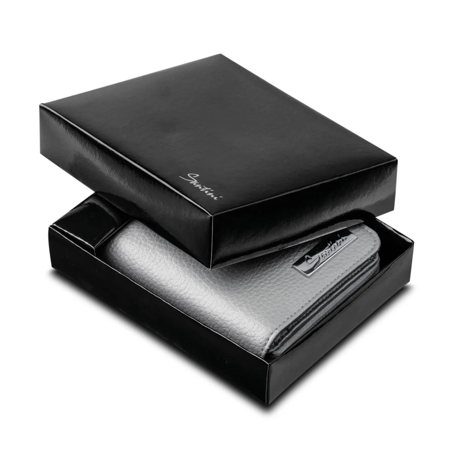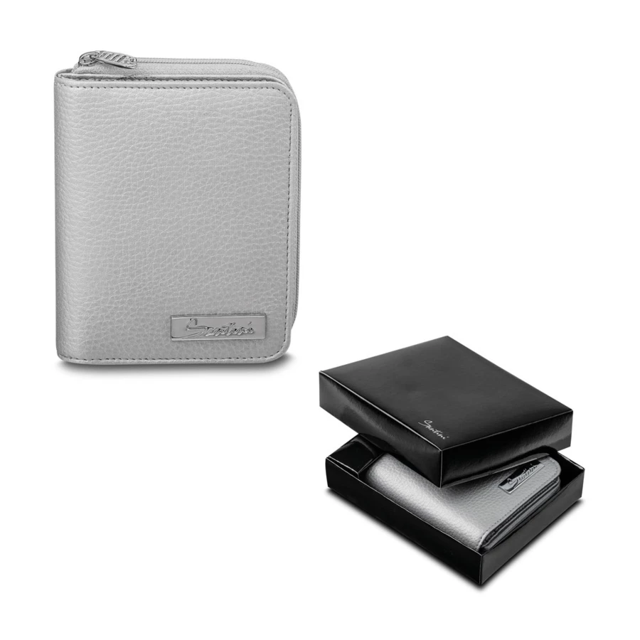 Women's wallet made of imitation leather in a gift paper box. Compartment for banknotes, separate space for coins, 6 spaces for cards and 4 additional spaces. 100 x 122 x 30 mm