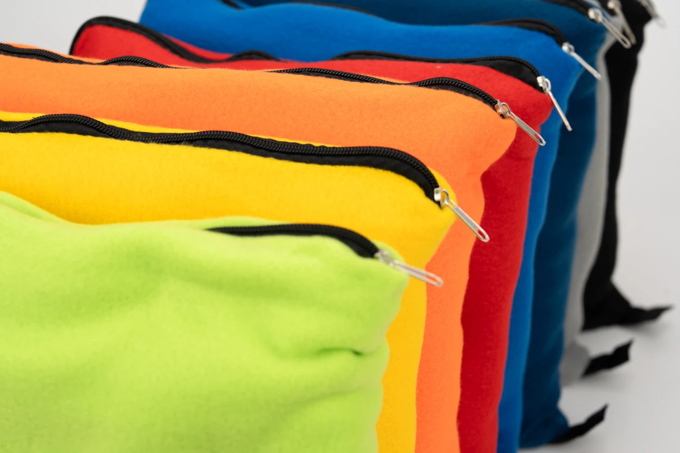 Fleece blanket (grammage 170 g/m², size: 180 x 120cm) with zipper, which by folding then turns into a pillow. We embroider your logo on the blanket.