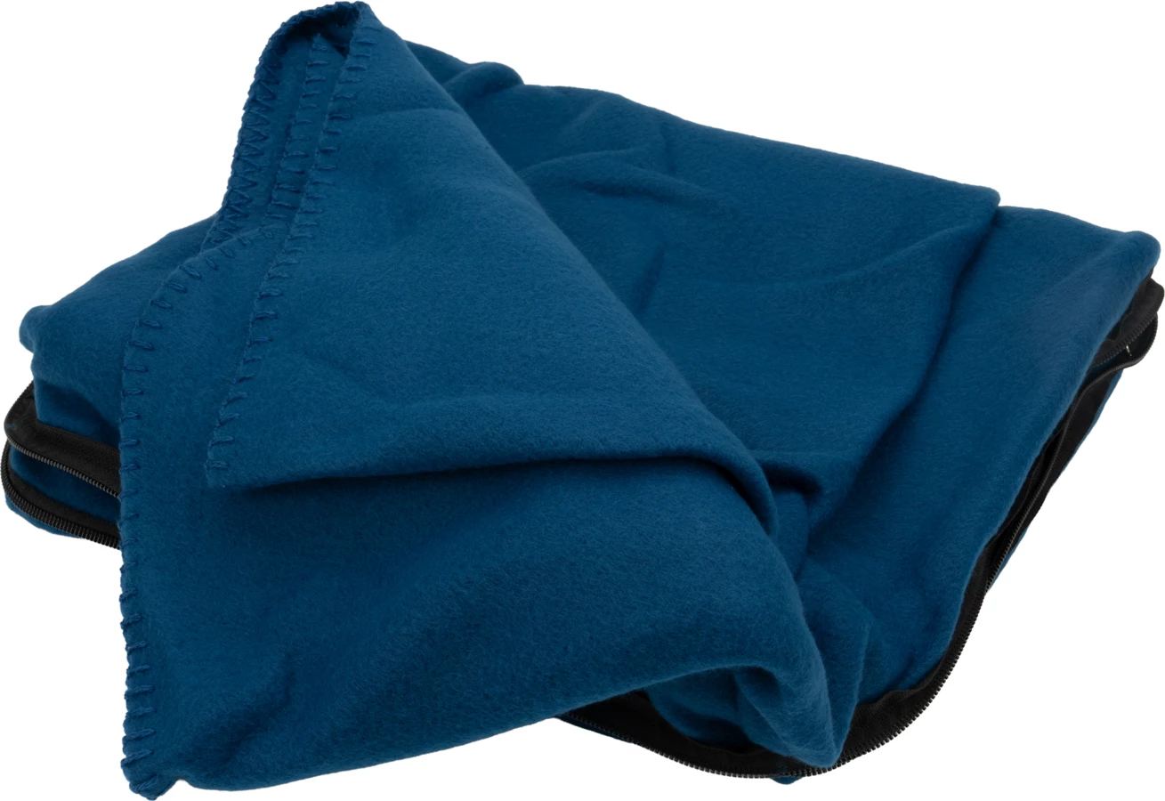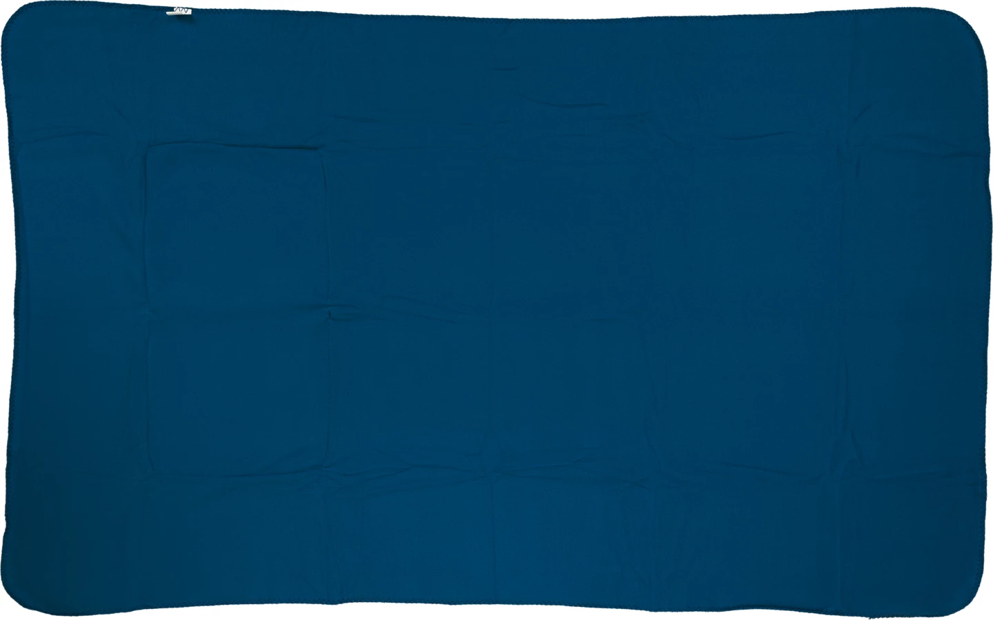 Fleece blanket (grammage 170 g/m², size: 180 x 120cm) with zipper, which by folding then turns into a pillow. We embroider your logo on the blanket.
