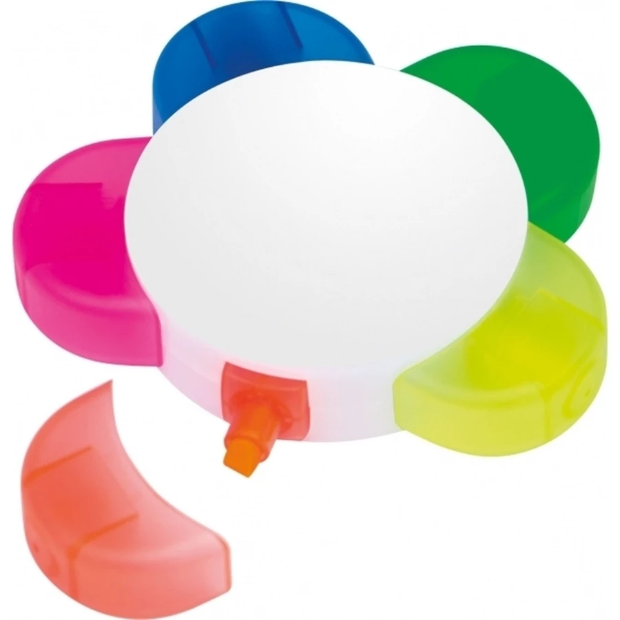 Highlighter with five different colors and large advertising space in the middle. We print your logo in the middle of the highlighter.