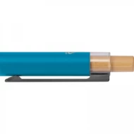 Recycled aluminium ballpen with metal clip, blue refill and bamboo pusher.