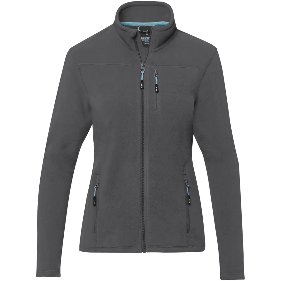 The Amber women's GRS recycled full zip fleece jacket – a perfect fushion of style and functionality. This jacket features a GRS recycled center front zipper coil for a sleek and durable closure. The inner stormflap with chinguard provides extra protection against the elements. The jacket has front pockets with secure zippers, allowing you to carry essentials with ease, and the chest pocket with zipper closure adds a touch style. Made from 174 g/m² GRS certified recycled polyester, the Amber fleece jacket is the perfect balance between warmth and lightness. Elevate your outdoor adventures with this remarkable jacket that embodies sophistication. The GRS certification ensures a 100% certified supply chain, from raw material to our printing techniques, making this garment a more responsible choice. This jacket is designed with a fitted shape for a feminine look.